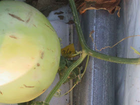 で今困っているのは、枯れてしまった株にできたメロン9個。